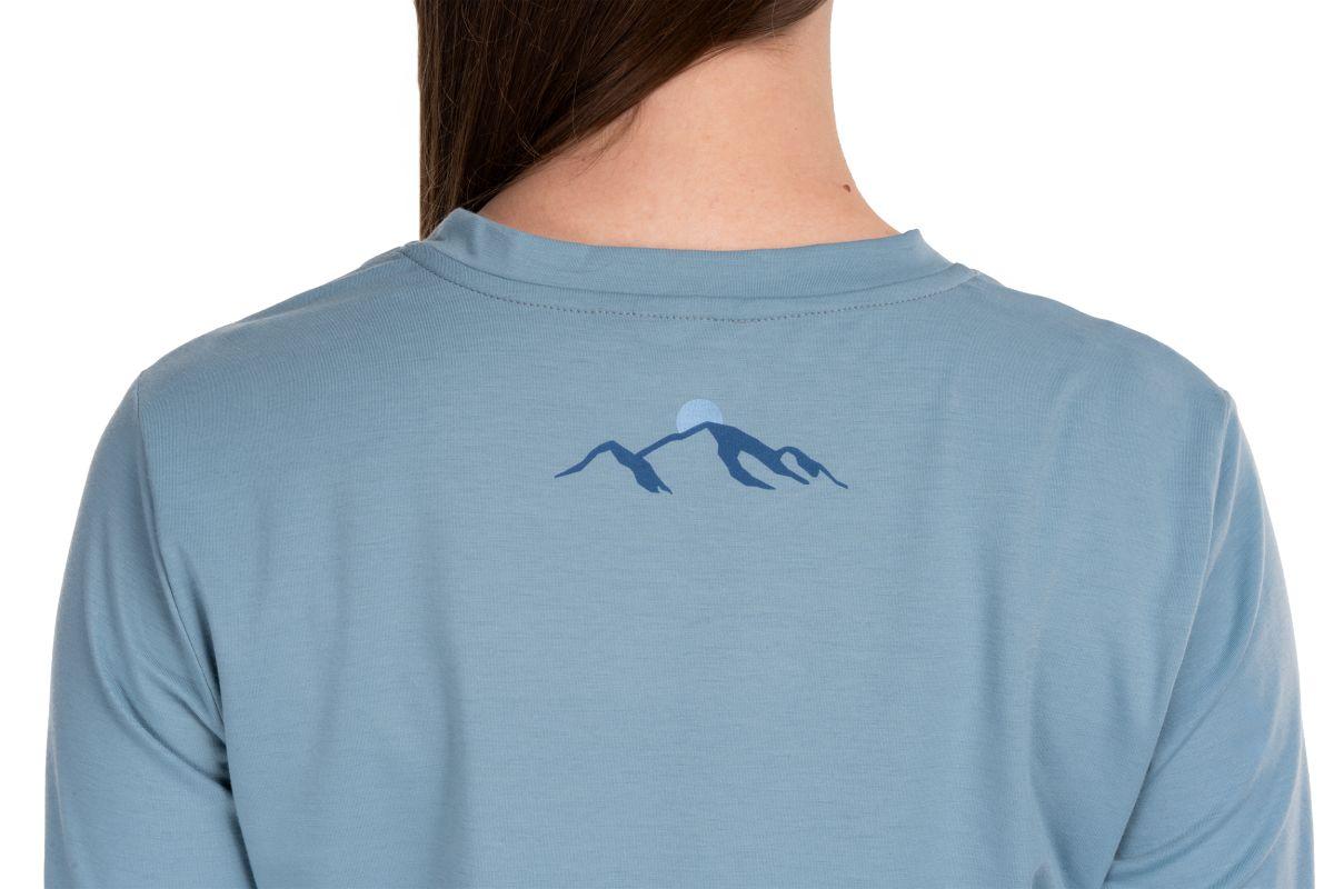 atmungsaktives, schnelltrocknendes Funktionsmaterial mit Baumwollhaptik, Tasche mit Reißverschluss hinten, dezenter Druck, Model ist 168 cm groß, Model trägt Größe S