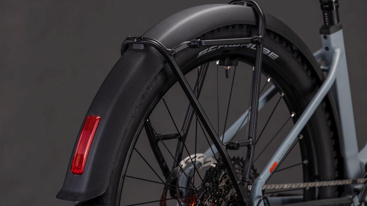 Was beim Reaction Hybrid FE direkt ins Auge sticht, ist sein ästhetisch ansprechendes, praktisches Zubehör, bestehend aus Schutzblechen, Lichtern, Gepäckträger und Seitenständer. Doch das ist noch lang nicht alles. Der Tiefeinsteiger-Rahmen macht seinem Namen alle Ehre, denn damit sind einfaches Auf- und Absteigen garantiert. Sein 800 Wh starker PowerTube Akku von Bosch fügt sich gemeinsam mit dem Bosch CX Motor sicher, sauber und formschön ins Design ein. Zudem ist das Chassis PowerMore-ready, das heißt, es können bei Bedarf weitere 250 Wh mitfahren. Auch die integrierte Sattelklemmung und die nach innen verlegten Züge spielen der cleanen Linienführung in die Karten – und die Kettenführung hält alles top organisiert am Platz. Last, but not least haben wir dank unserem Size Split System für alle die richtige Passform im Angebot. Fazit: Alles da, was wichtig ist – für maximalen Fahrspaß!