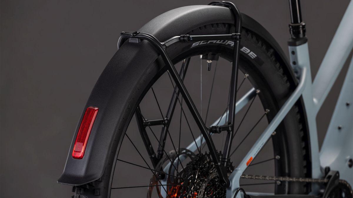 Ein Meisterwerk in Sachen Vielseitigkeit: Der Rahmen des Reaction Hybrid FE ist standardmäßig mit Schutzblechen, einem Gepäckträger, Lichtern und einem Seitenständer ausgestattet. Doch das ist noch lang nicht alles. Sein 800 Wh starker PowerTube Akku von Bosch fügt sich gemeinsam mit dem Bosch CX Motor sicher, sauber und formschön ins Design ein. Zudem ist das Chassis PowerMore-ready, das heißt, es können bei Bedarf weitere 250 Wh mitfahren. Auch die integrierte Sattelklemmung und die nach innen verlegten Züge spielen der cleanen Linienführung in die Karten – und die Kettenführung hält alles top organisiert am Platz. Last, but not least haben wir dank unserem Size Split System für alle die richtige Passform im Angebot. Fazit: Alles da, was wichtig ist – für maximalen Fahrspaß!