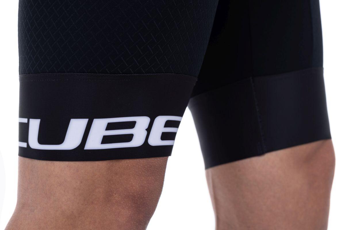 Renneinteiler für cross country, atmungsaktiv und schnelltrocknend, robuster, widerstandsfähiger Materialmix, 3-teilige Rückentasche, CUBE Team Pad - hergestellt in Italien, Model ist 190cm groß, Model trägt Größe L