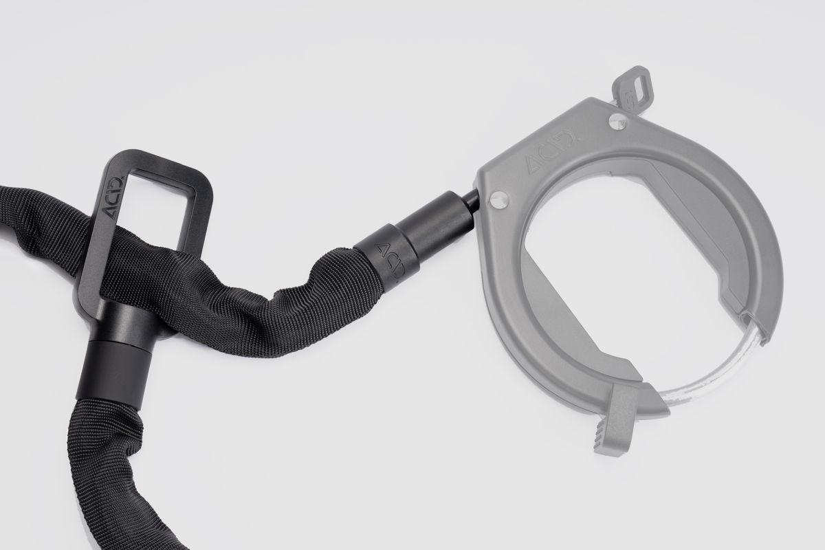 Einsteckkette für ACID Rahmenschlösser, geräuscharm, geprüft auf mechanische Festigkeit, abnutzungsresistent, schadstoffarm zertifiziert, korrosionsgeschützt, Kunststoffcover schützt den Rahmen vor Kratzern
