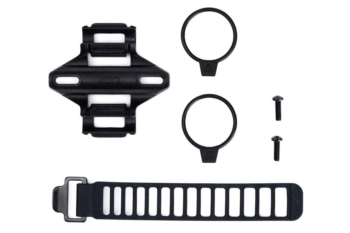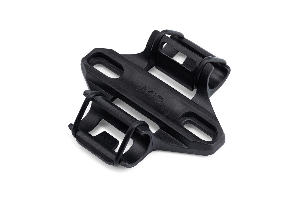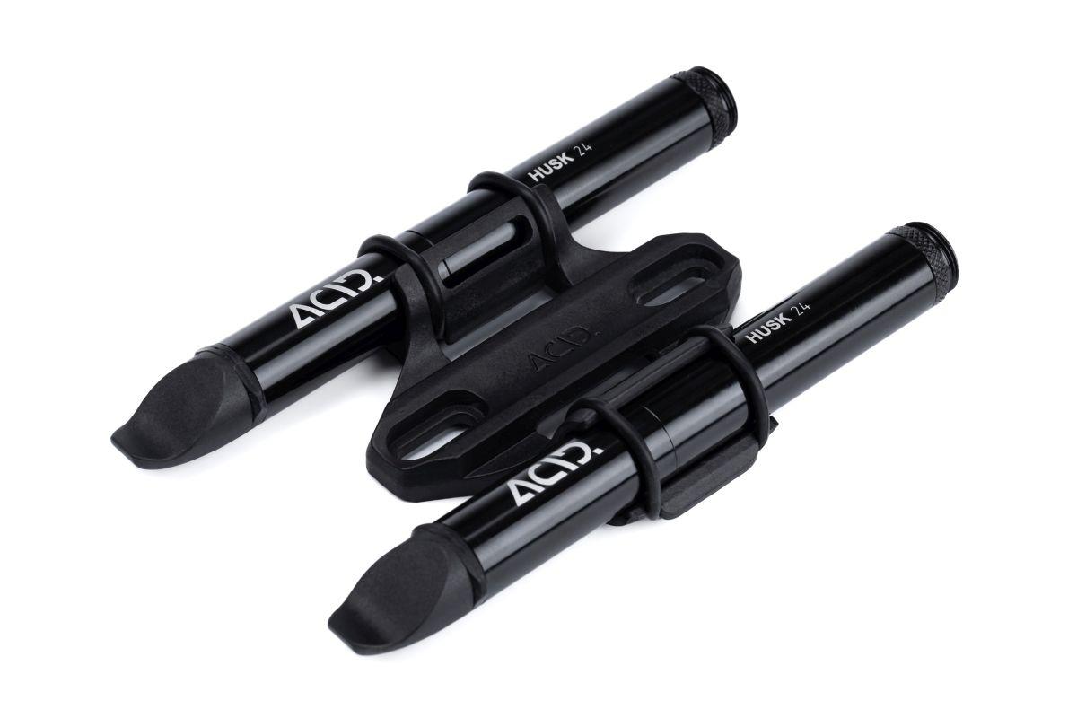 Die ACID Rahmenhalterung für das Multitool HUSK wird an der für den Flaschenhalter vorgesehenen Schnittstelle am Rahmen verschraubt und kann auch mit einem Flaschenhalter kombiniert werden. Per Strap kann die Rahmenhalterung auch an anderer Stelle am Rahmen befestigt werden. Die Metall-Tubes des HUSK werden dann einfach rechts und links eingeklickt. Zusätzlich kann auch eine Luftpumpe per Strap fixiert werden.