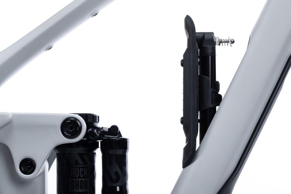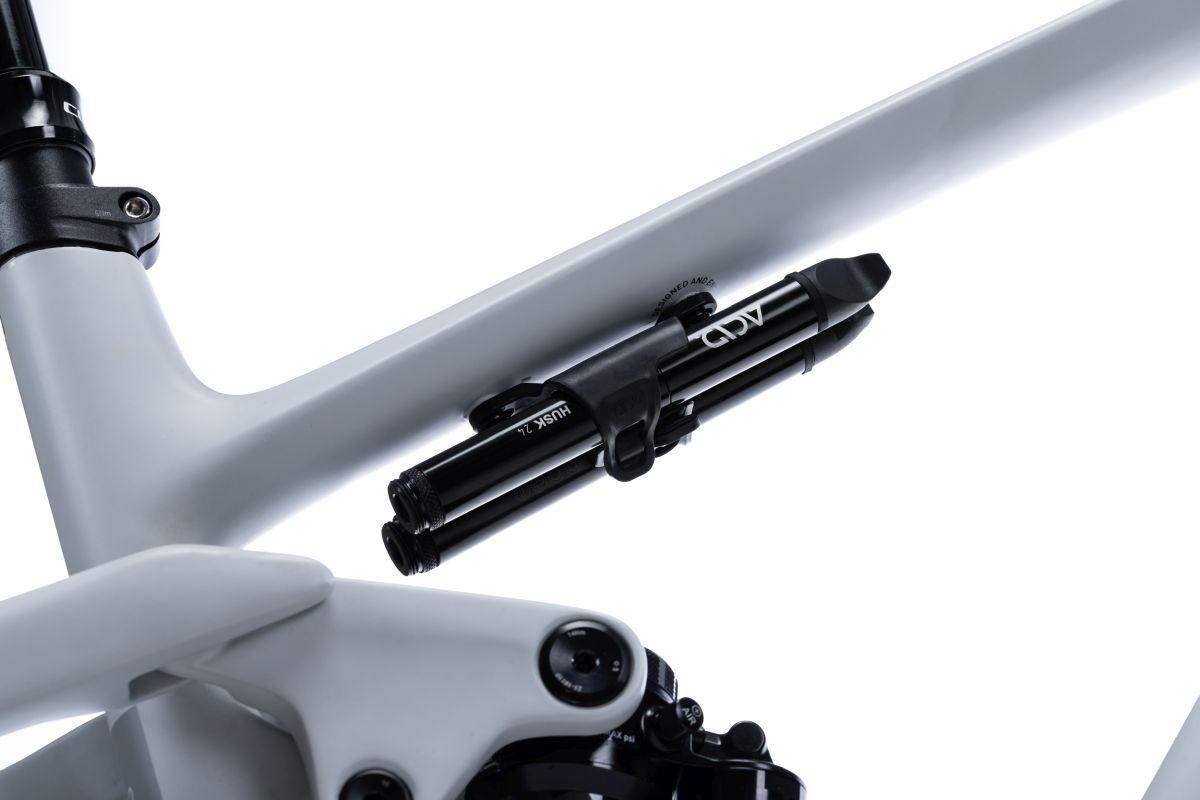 Die ACID Rahmenhalterung für das Multitool HUSK wird an der für den Flaschenhalter vorgesehenen Schnittstelle am Rahmen verschraubt. Die Metall-Tubes des HUSK werden dann einfach rechts und links eingeschoben und mit den Gummilaschen sicher und klapperfrei fixiert.