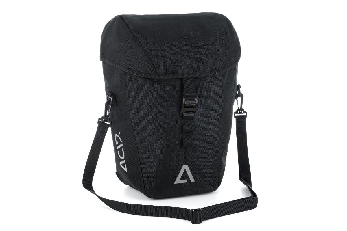abriebfestes Außenmaterial, PVC-frei, ACID Einhängesystem CILink, für alle ACID Gepäckträger mit CILink-Befestigungssystem, Schultertragegurt, Aluminium G-Hook, reflektierende Elemente, großes Innenfach, Regenhülle