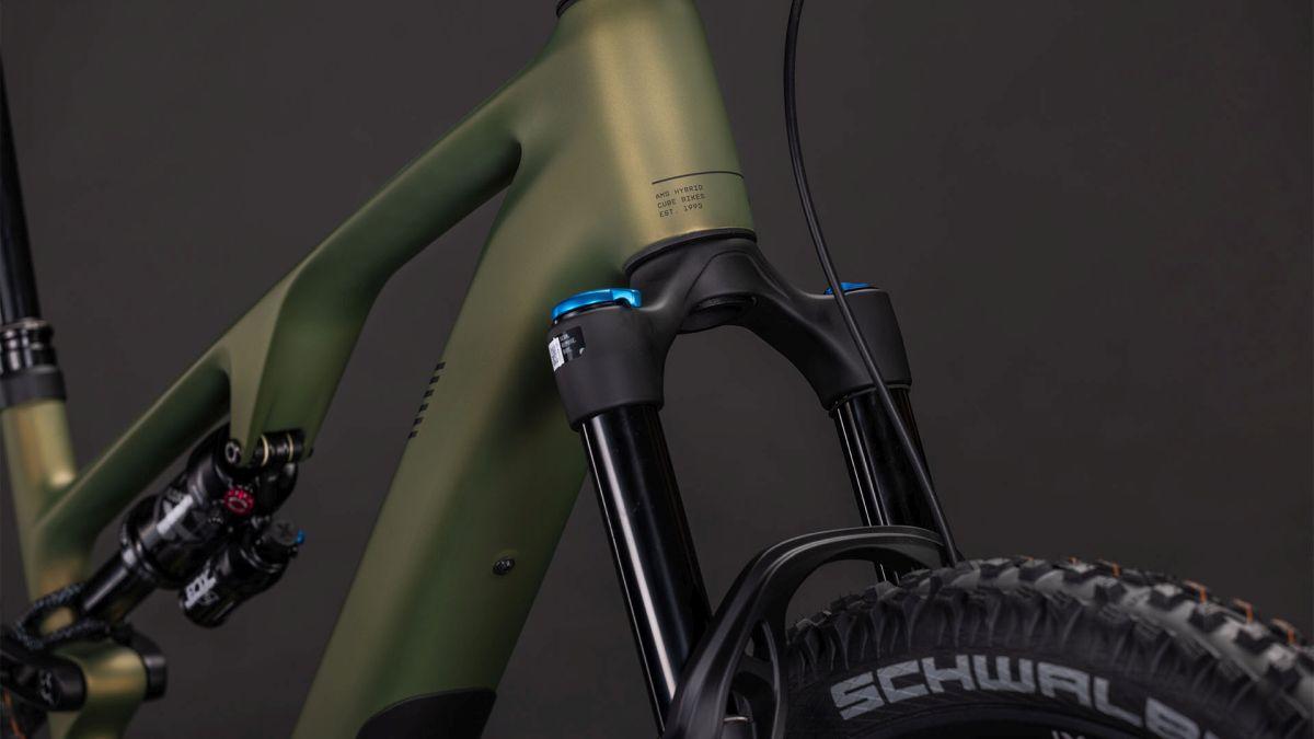 Beim CUBE AMS Hybrid ONE44 C:68X besteht der Rahmen aus unserem hochinnovativen C:68X® Carbonverbundwerkstoff, der unschlagbare Stabilität und Steifigkeit sowie extrem geringes Gewicht auf einen Nenner bringt. Seinen 400 Wh Akku haben wir für optimiertes Handling sicher im Unterrohr verpackt – und zwar so nah wie möglich am leichten Bosch SX Motor – und weil das Chassis PowerMore-ready ist, lassen sich für noch mehr Reichweite per optimalem Zusatzakku weitere 250 Wh nachrüsten. Unser Internal Cable Routing spielt der cleanen Optik des Chassis' in die Karten. Dank einem Steuersatz mit Winkelverstellung lässt sich das Handling an den individuellen Fahrstil anpassen. On top kommen eine leichte Direct Mount Kettenführung und ein UDH. 1a-Voraussetzungen für ganz viel Power und Speed auf allen Trails, oder?