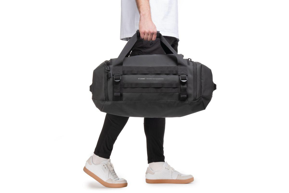 abnehmbare Schultergurte, MOLLE-System kompatibel mit CUBE GEAR BAGS, inkl. abnehmbarer und faltbarer Fußmatte, Schuh- und Helmfach, Netztaschen im Hauptfach