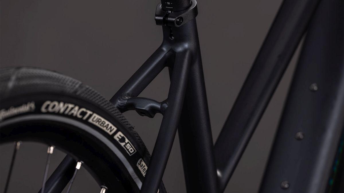 Der Trapezrahmen des Editor Hybrid gibt sich auf den ersten Blick vielleicht eher unauffällig, kommt aber mit zahlreichen cleveren Features auf die Straßen der Stadt. Er besteht aus leichtem, widerstandsfähigem Aluminium und wurde für einen cleanen, authentischen Look an den Hauptrohrverbindungen per Smooth Welding veredelt. Die Leitungen verlaufen komplett im Rahmeninneren, was die aufgeräumte Optik des Chassis' unterstreicht. On top haben wir den 400 Wh Akku formschön ins Unterrohr und den kleinen System Controller unauffällig ins Oberrohr integriert. Die leichte und dennoch stabile Vollcarbongabel setzt dem Komfort und dem Style die Krone auf. Damit ist ein unvergesslicher Auftritt in der City garantiert!