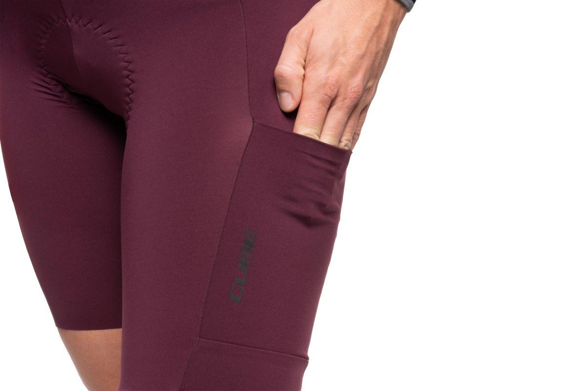 Vorgeformte, ergonomische Passform für Komfort auf langen Fahrten, geruchshemmende Ausrüstung, atmungsaktives, komprimierendes und elastisches Material, elastische und weiche Trägerkonstruktion, Seiten- und Rücktasche, CUBE Team Pad - hergestellt in Italien, Model ist 168 cm groß, Model trägt Größe S