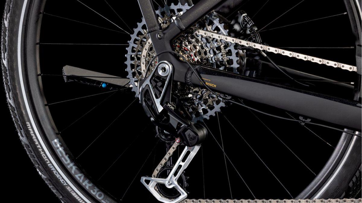 Der Tiefeinsteiger-Rahmen des CUBE Kathmandu Hybrid macht seinem Namen alle Ehre, denn er erleichtert das Auf- und Absteigen und die Tour kann direkt losgehen! Doch da ist noch mehr, zum Beispiel der samt 800 Wh PowerTube Akku ästhetisch und sauber ins Design integrierte CX Motor von Bosch. Unsere Efficient Comfort Geometry arbeitet harmonisch mit der 100 mm Federgabel Hand in Hand, was die Kontrolle vor allem unter schwierigen Bedingungen optimiert. Dazu die interne Zugverlegung, die der cleanen Optik des Chassis in die Karten spielt und den Wartungsaufwand maßgeblich reduziert. Was noch? Ein vielseitiges, beinahe unzerstörbares UDH für einfache Ersatzteilverfügbarkeit, ein integrierter Kettenschutz und unser stabiler, robuster, überaus formschöner integrierter Gepräckträger IC 3.0, auf dem alles Platz findet, was auf Abenteuertour mit muss.