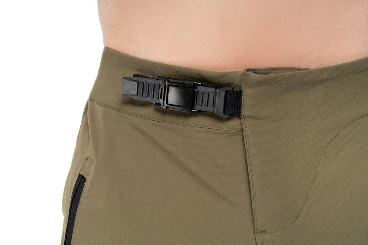 Ratschenverschluss für Komfort und schnelle Handhabung unterwegs, Eingrifftaschen mit Reißverschluss, schmal zulaufende Beinabschlüsse zum Schutz vor Hängenbleiben, beständige, wasserabweisende DWR-Beschichtung, elastischer Bund, Model ist 185 cm groß, Model trägt Größe M