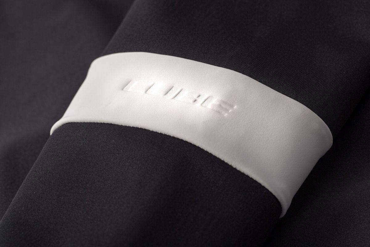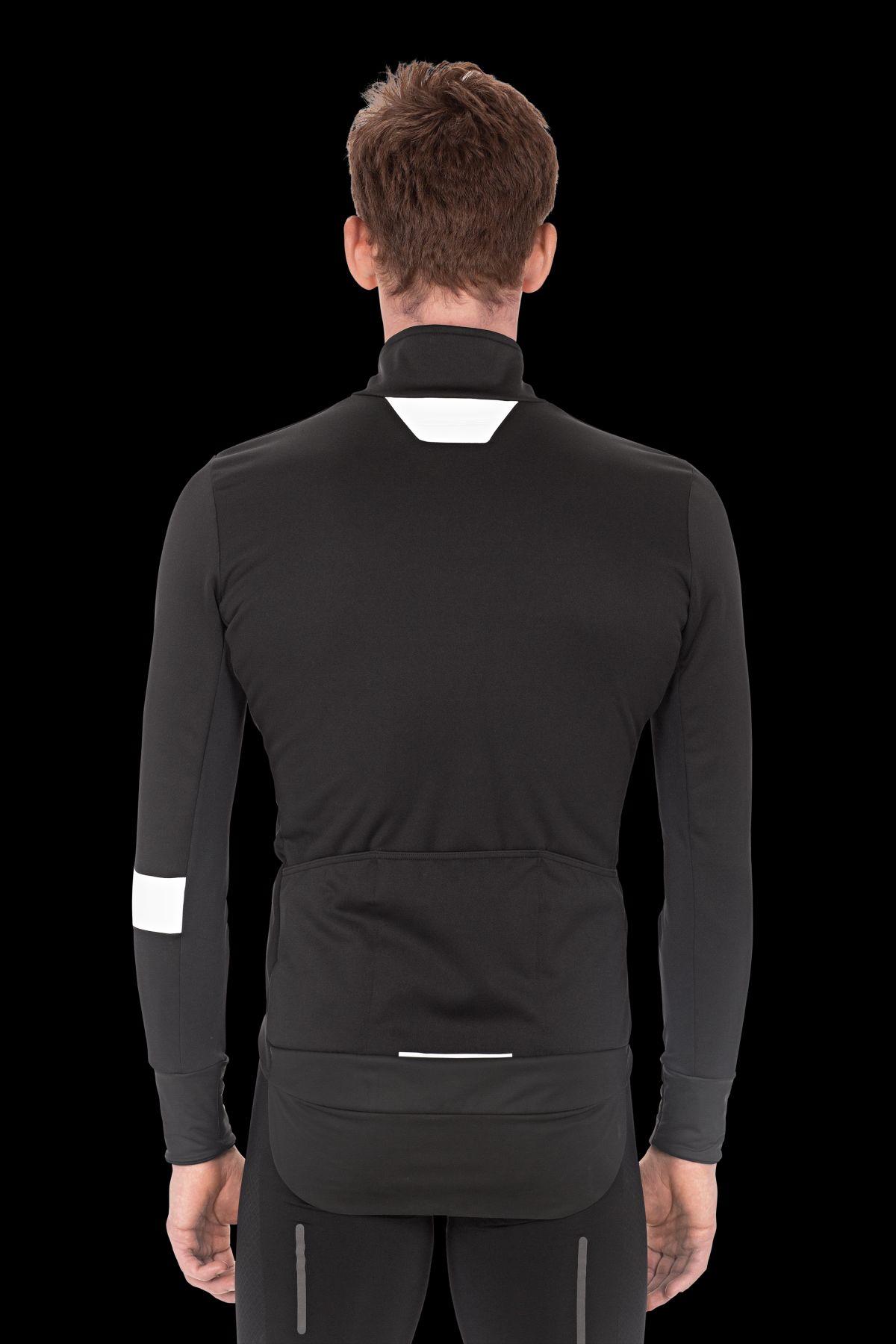 3-Lagen-Funktionsmaterial, mikroporöse Membran für maximale Atmungsaktivität, winddicht und wasserabweisend, 3-teilige Rückentasche, Brusttasche, Ventilationseinsätze, Rückenteil mit wasserdichter PU-Beschichtung - einklappbarer Nässeschutz, reflektierende Elemente, Primeshell, Model ist 184 cm groß, Model trägt Größe M