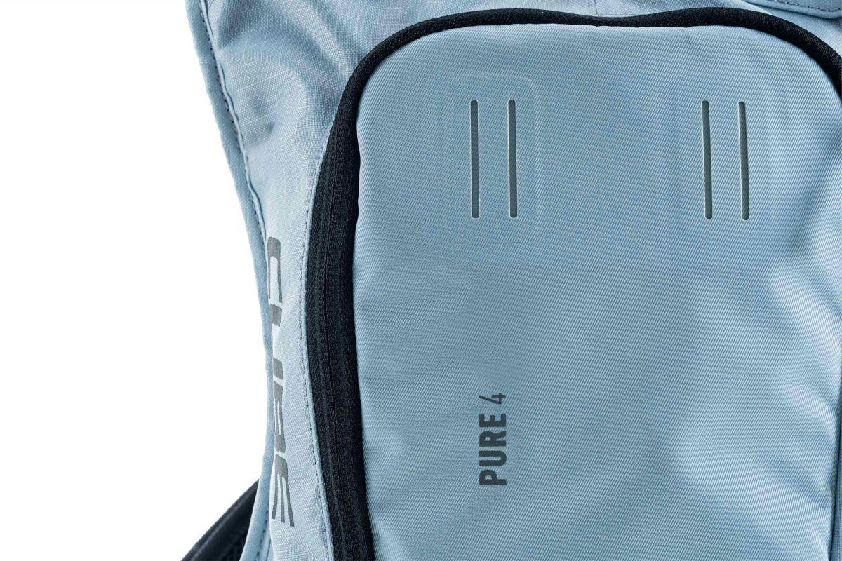 "Klein und smart: Der PURE 4 ist reduziert aufs Wesentliche. Er hat alle Essentials, die man auf kurzen Touren braucht. Er ist trinkblasenkompatibel und mit beidseitigem Ausgang für den Trinkschlauch versehen. Netztaschen im Hauptfach schaffen Ordnung und geben kleinen Gegenständen Halt. Das Seitenfach mit Zipper bietet genug Platz für das Handy oder andere Kleinteile, die schnell erreichbar sein sollen. Das X-Shape Schultersystem schließt bequem vor der Brust. So engt am Bauch nichts ein und du kannst frei atmen. Dank MOLLE-System lässt sich auch die kleine CUBE GEAR BAG 1 mit angenähten Klettbändern sicher am Rucksack fixieren."