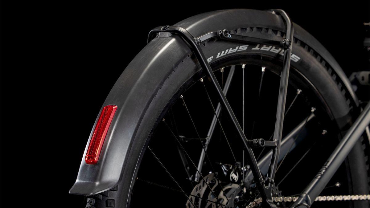 Bei einem guten Bike kommt es oft auf das Zubehör an – und beim Stereo Hybrid ONE22 Pro 800 Allroad haben wir uns diesbezüglich nicht lumpen lassen. Auf dem Gepäckträger findet alles Platz, was auf dem Weg ins Office oder bei der Radtour am Wochenende mitmuss. Schutzbleche halten Schmutz und Spritzwasser ab. On top gibt's einen Seitenständer und Lichter. Erstklassige Unterstützung ist das Spezialgebiet des leistungsstarken Bosch CX Motors mit Purion 200 Display und 800 Wh Akku. Für die wohldosierte Umsetzung dieser Power auf den Untergrund sorgt die einfach bedienbare Shimano Cues 10-fach Schaltung. Last, but not least vermitteln griffige Schwalbe 2.6 Zoll Pneus und beherzt zupackende hydraulische MT Thirty Scheibenbremsen von Magura ein sicheres Fahrgefühl. Ein Allrounder, wie er im Buche steht!