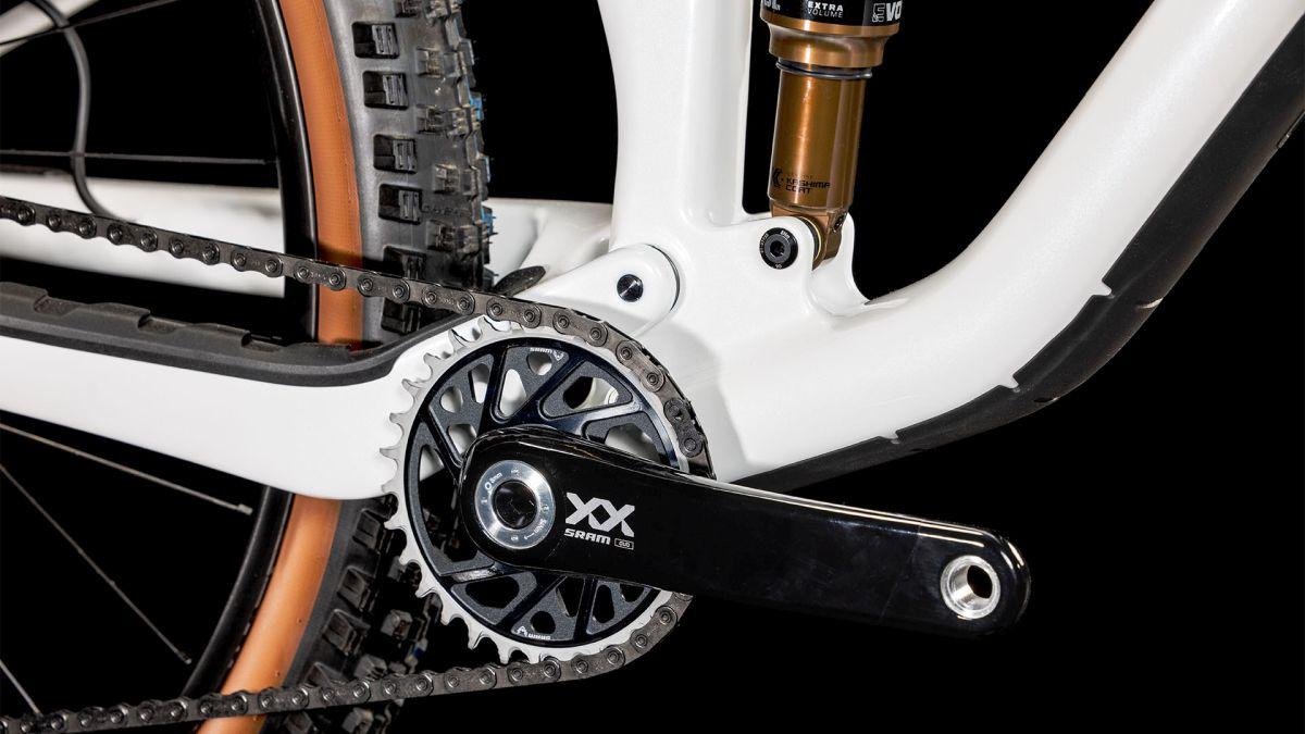 Leicht, agil, vielseitig und superkomfortabel – das kann nur das Stereo ONE22 C:62 SLT sein! Um den effizienten Vortrieb kümmert sich der superzuverlässige und robuste Sram XX Eagle Transmission Antrieb mit seinem weiten Übersetzungsbereich und extrem präzisen elektronischen Gangwechseln. Wer dann mit Vollgas auf den Trails unterwegs ist, freut sich über die leistungsstarken hydraulischen 4-Kolben Level Ultimate Scheibenbremsen von Sram – und über die 130 mm Federweg der Fox 34 Float Factory GripX Federgabel und den dazu passenden Float Factory Dämpfer. Exzellente Bodenhaftung ist das Spezialgebiet der Schwalbe Nobby Nic beziehungsweise Wicked Will 2.4 Zoll Pneus mit Aerothan Schläuchen auf leichten Newmen Phase 30 Laufrädern. Last, but not least: eine Vorbau-Lenker-Einheit aus Carbon für messerscharfe Kontrolle im Gelände.