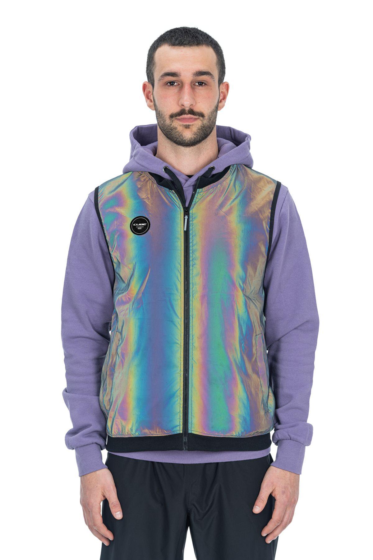 Die Fahrradweste im Rainbow Reflective Design ist nicht nur funktional, sie ist auch ein Hingucker. Sie ist wasserabweisend und dank reflektierendem Material fällst du auch bei Schmuddelwetter jedem Autofahrer auf. In den Seitentaschen mit Druckknöpfen ist Kleinkram gut verstaut und der elastische Saum sorgt dafür, dass sie sitzt, wo sie sitzen soll und nicht hochrutscht.