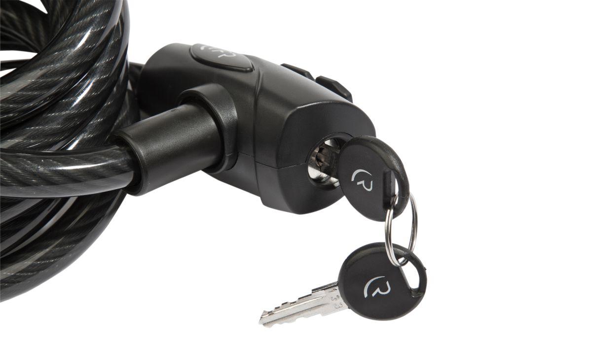 Sehr robustes Spiralschloss mit einem Stahlkabeldurchmesser von 12 mm und einer Kabellänge von 1800 mm. Stahlkabel und Schlosskörper sind korrosionsgeschützt und dadurch für den alltäglichen Einsatz bestens gerüstet. Extra sicherer Schließzylinder, dem man sein Rad bedenkenlos anvertrauen kann.